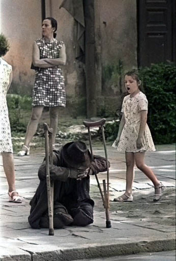 К началу 1950-х нищенство в СССР распространилось, как никогда. Инвалиды, сидящие на мизерных пенсиях, без опеки государства, брошенные семьями, заполонили улицы. В 1951 выходит указ Президиума Верховного Совета СССР «О мерах борьбы с антиобщественными, паразитическими элементами», в котором прописано, что всех т.н. «паразитов» -- трудоспособных попрошаек, бездомных и тех, кто не работает, можно принудительно высылать в отдаленные районы СССР и заставлять работать.
