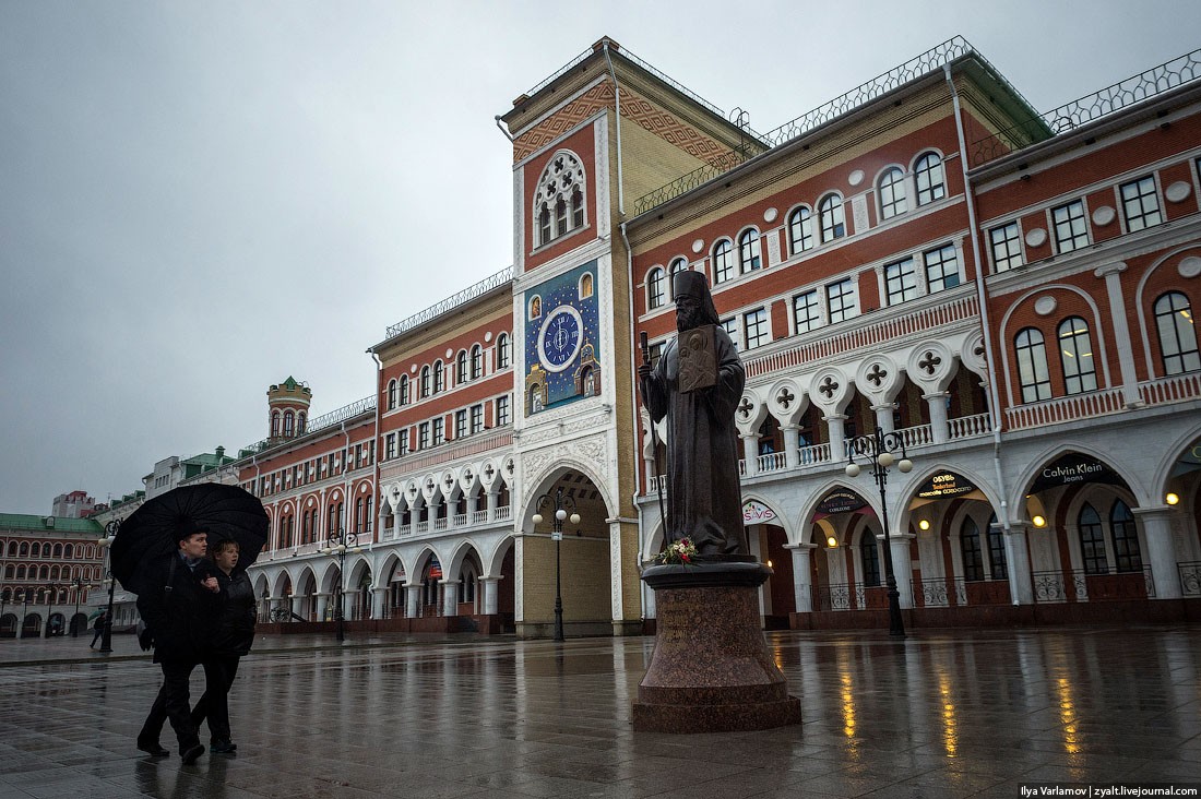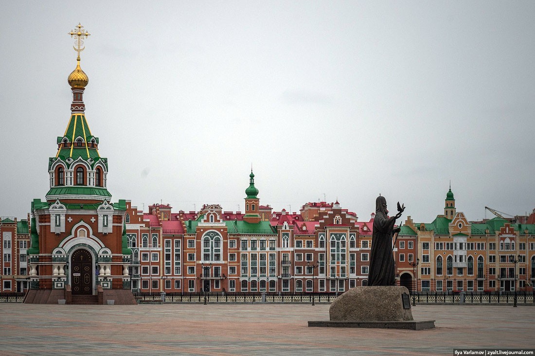 Сама площадь чем-то напоминает Венецию... Ах, да... Леонид Маркелов же решил превратить Йошкар-Олу в "центр средневекового города, но при этом абсолютно современного" (из его интервью), собрав здесь нелепые пародии на лучшие памятники мировой архитектуры. Глава республики сам принимает участие в проектах. Говорит, что любит архитектуру, а потому "нашёл двух талантливых архитекторов и вместе с ними начал рисовать в свободное от работы время".