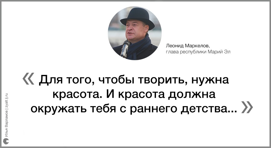 "Для того, чтобы творить, нужна красота. И красота должна окружать тебя с раннего детства..." -- говорит Маркелов о центре Йошкар-Олы. Напомню, что простых людей в Йошкар-Оле окружает вот что: