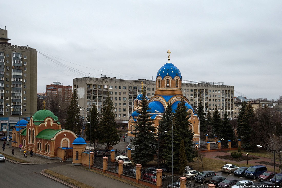 Еще Леонид Маркелов очень любит храмы. Они в Йошкар-Оле появляются как грибы после дождя. В самом центре, сразу за сгоревшими и развалившимися бараками, растут храмы!